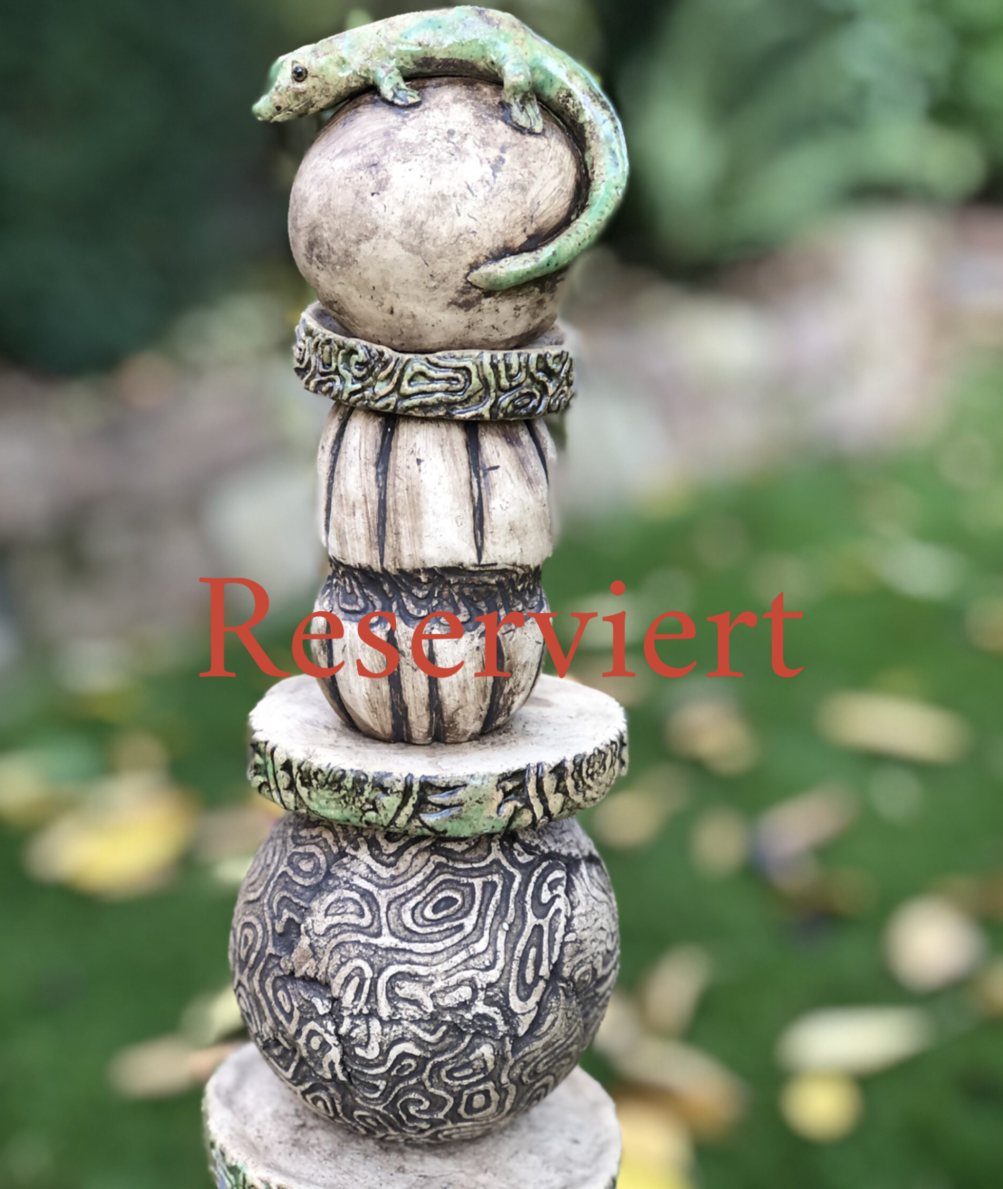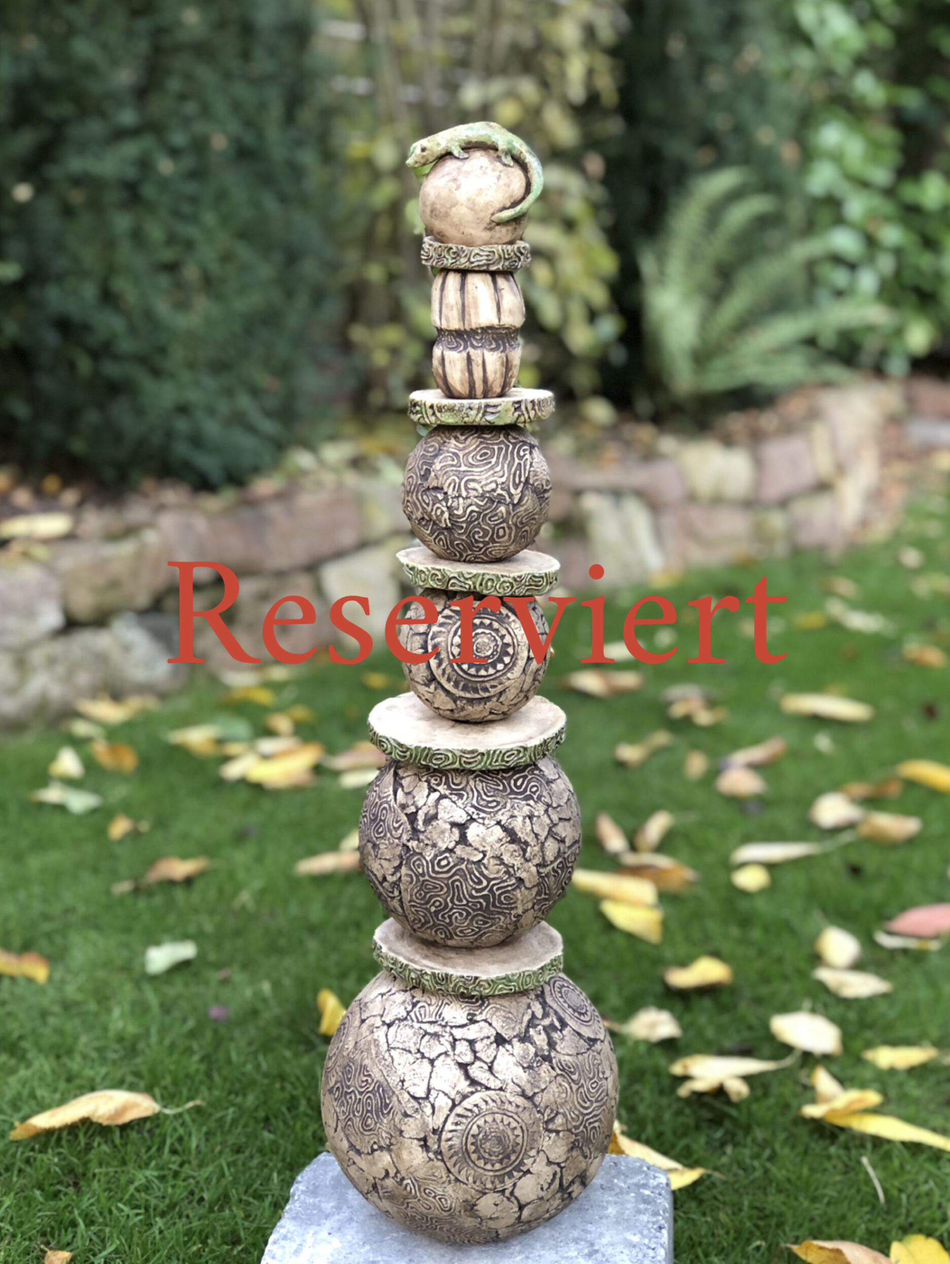 Stelen _ Neue Objekte Nr. 42 - Höhe 126 cm - 1.100,00 € reduziert auf 800,00 € Nr. 105 - Höhe 67 cm - 230,00 € reduziert auf 180,00 € Nr. 105 Neu Nr.168 Neu Nr. 169 - Kugel grün-türkis - Höhe 40 cm - 125,00 € Neu Nr. 170 - Stele mit kleinem Fisch - Höhe 40 cm - 130,00 € Nr. 170 Neu Nr. 172 - Stele Fisch türkis - Höhe 50 cm - 160,00 € Nr. 172 Neu Nr. 174 - Stele Kugel grün - Höhe 40 cm - 140,00 € Nr. 174 Neu Nr. 175 - Stele Ton schwarz, schwarze Eidechse - Höhe 50 cm - 160,00 € reduziert auf 130,00 € Nr. 175